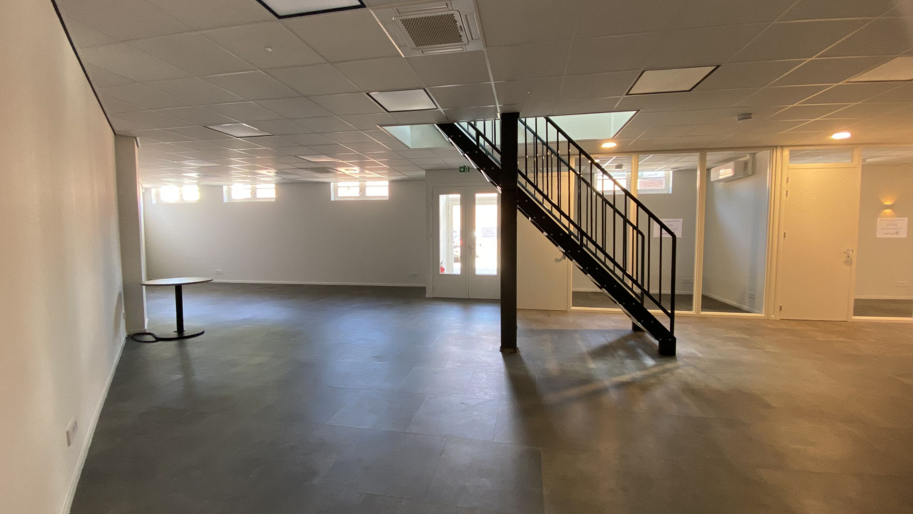 Eerste verdieping 120 vierkante meter verdeeld in 4 kantoren van 12m2 tot 36m2.